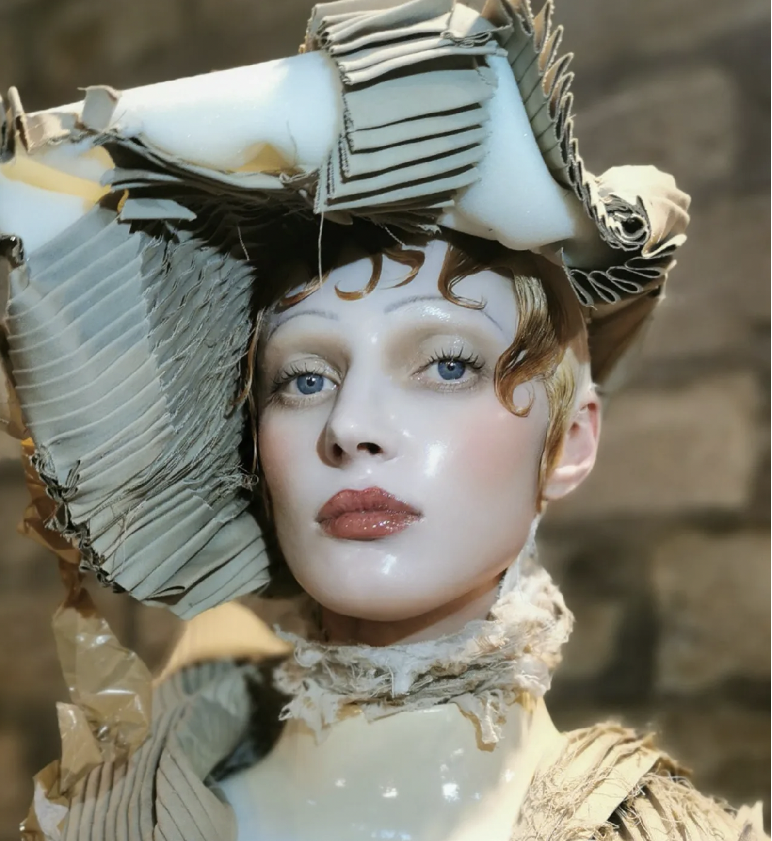 When I saw Pat McGrath's innovative glass-skin porcelain doll look for Maison Margiela, I was stunned. I saw a plethora of videos of people re-creating it soon after it debuted. Although its smooth, glass finish is extremely ingenious, the part that struck me most was the removal process. When the mask is applied, it creates a clear barrier that doesn't disturb makeup- and when it’s removed it looked like someone's skin is peeling off. I began experimenting immediately.